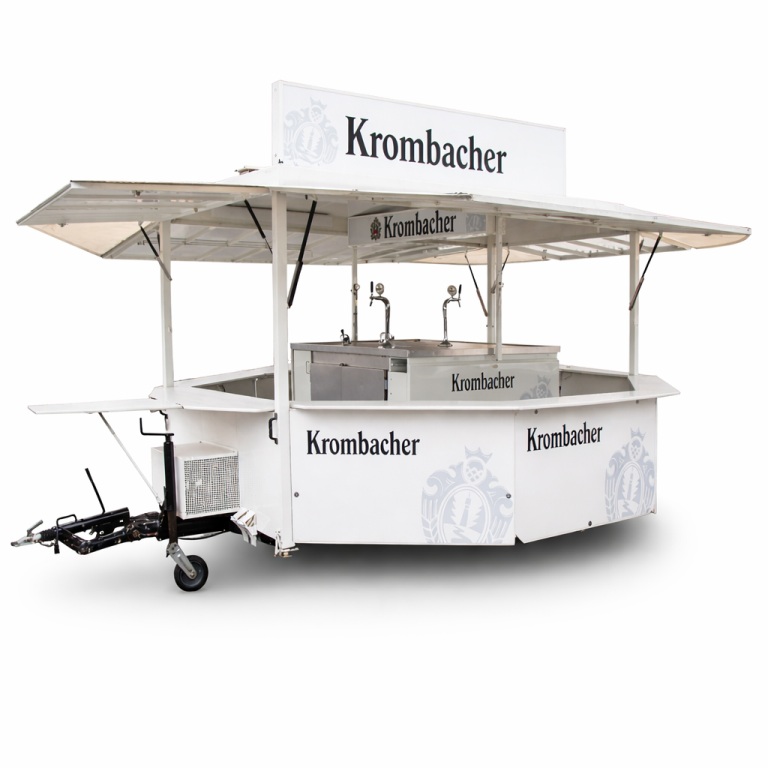 Die Krombacher Insel ist eine Kombination aus Kühlwagen & Ausschankwagen, die Ideal für Geburtstage, Hochzeiten u.v.m. geeignet ist. Sie bietet genügend Platz in der Kühlzelle, um die Getränke stets kühl zu lagern. Sie ist mit einer integrierten Zapfanlage und Stereo Lautsprechern ausgestattet. Desweiteren befinden sich mehrere Stehtische und eine Theke im Stauraum des Wagens, welche selbstverständlich mitgenutzt werden können.